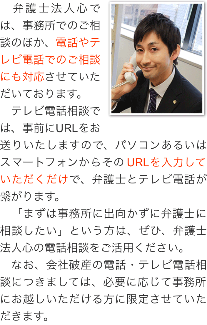 トップその他電話・テレビ電話相談について 階層構造▼ その他(目次) 電話・テレビ電話相談について その他(目次)その他トップ共通バナー元※削除不可新着情報(心グループニュース)電話・テレビ電話相談について代表メッセージ相談するタイミングを迷われている方へ金融機関との関係を壊したくない方へお客様相談室グループ概要費用詳細心グループのメディア出演実績マスコミ関係者の方へ関連リンクプライバシーポリシー 受付時間 平日 9時~21時、土日祝 9時~18時 夜間・土日祝の相談も対応します(要予約) 所在地 〒286-0033 千葉県成田市花崎町801-1京阪成田ビル6F 0120-41-2403 お問合せ・アクセス・地図