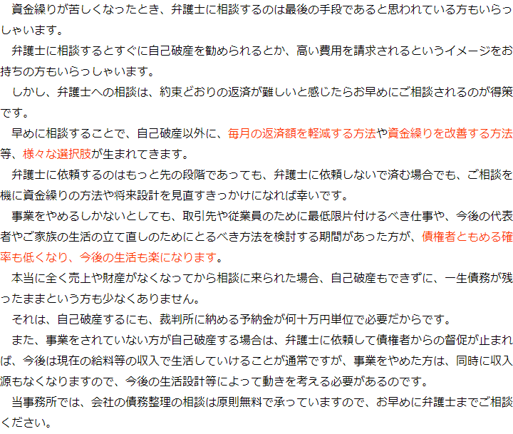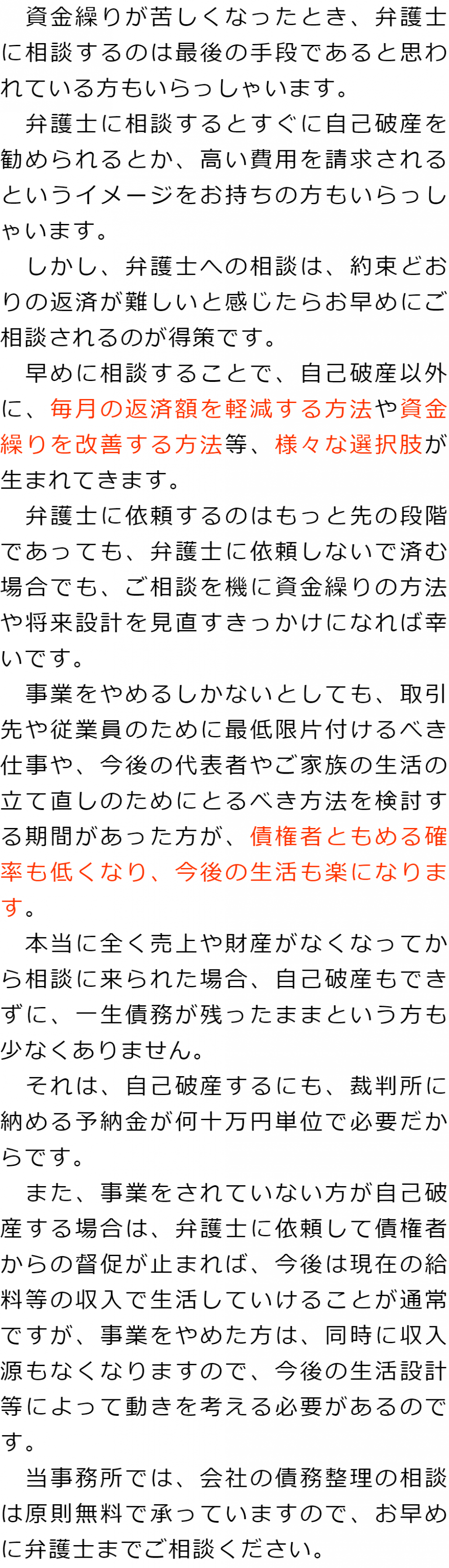 トップその他相談するタイミングを迷われている方へ 階層構造▼ その他(目次) 相談するタイミングを迷われている方へ その他(目次)その他トップ共通バナー元※削除不可新着情報(心グループニュース)電話・テレビ電話相談について代表メッセージ相談するタイミングを迷われている方へ金融機関との関係を壊したくない方へお客様相談室グループ概要費用詳細心グループのメディア出演実績マスコミ関係者の方へ関連リンクプライバシーポリシー 受付時間 平日 9時~21時、土日祝 9時~18時 夜間・土日祝の相談も対応します(要予約) 所在地 〒286-0033 千葉県成田市花崎町801-1京阪成田ビル6F 0120-41-2403 お問合せ・アクセス・地図